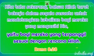 Kalau kita sekarang berkeadaan apa pun, jangan merasa kurang, selama kita punya Tuhan. Bapa YAHWEH terlalu besar, terlalu kuat. Walaupun Saudara adalah seorang Ibu sederhana, seorang Bapak tua sederhana atau orang muda yang tidak berpengalaman, tetapi hati kita pecah, maka pujian kita bak desau angin kuat yang menembus pintu surga. Menjadi kekasih Tuhan itu segalanya, sukses. Tingkat yang tinggi selanjutnya kita bisa menghadirkan suasana surga, itu tingkat kemerdekaan. Kita tidak bisa berbuat dosa lagi, tidak menyenangi apa pun. Sebaliknya, kita bisa menjadi berkat, penuh belas kasihan kepada orang, rela berkorban, tidak ingin seorang pun binasa, kita bisa menikmati Kerajaan Surga, di mana pun kita hadir menjadi pembawa damai.